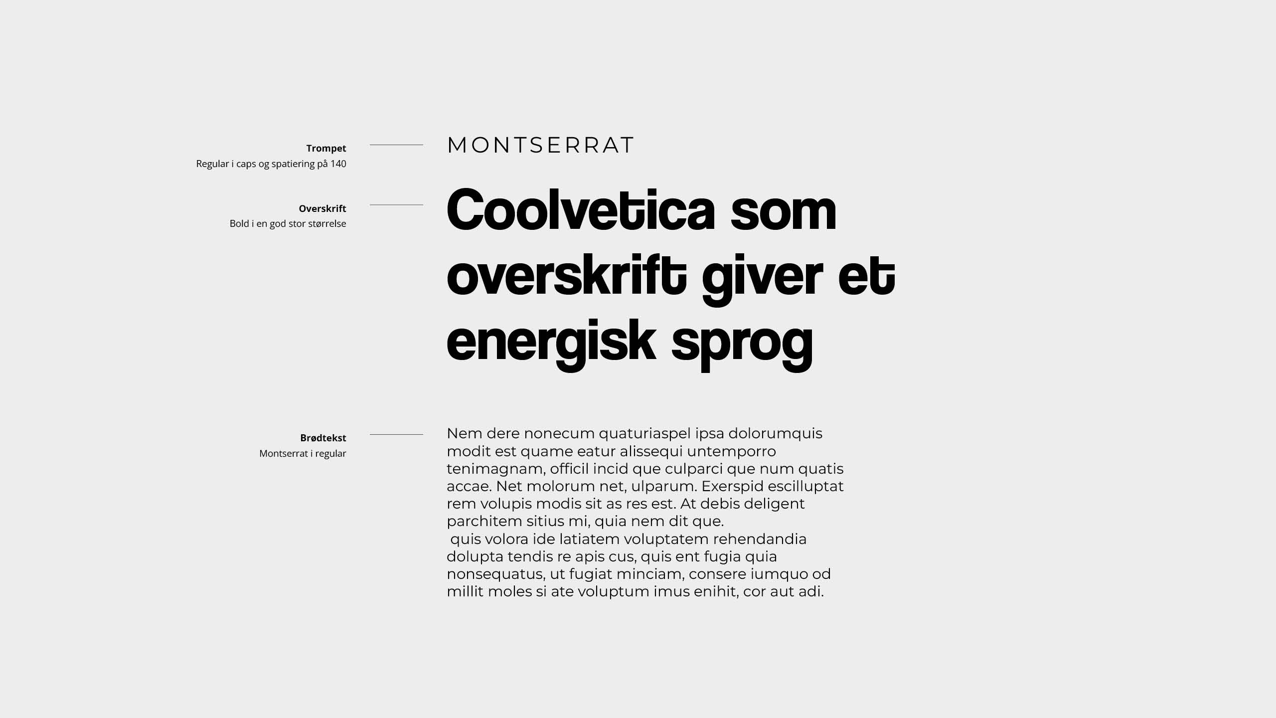 Coolvetia er en af mine favoritter, når det kommer til fonte med karakter. Den har nogle smukke bogstaver, som har god energi og en god rygrad. Hertil går Montserrat bare godt hånd i hånd.